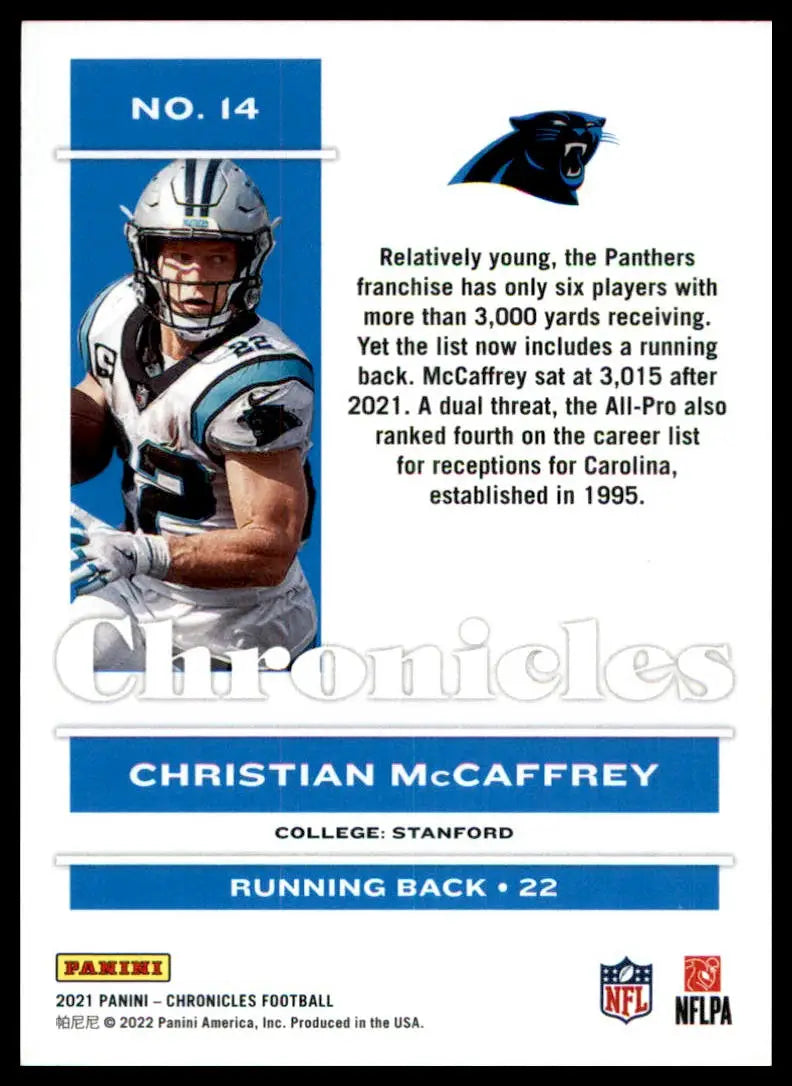 Christian McCaffrey 2021 Panini Chronicles #14 Carolina Panthers