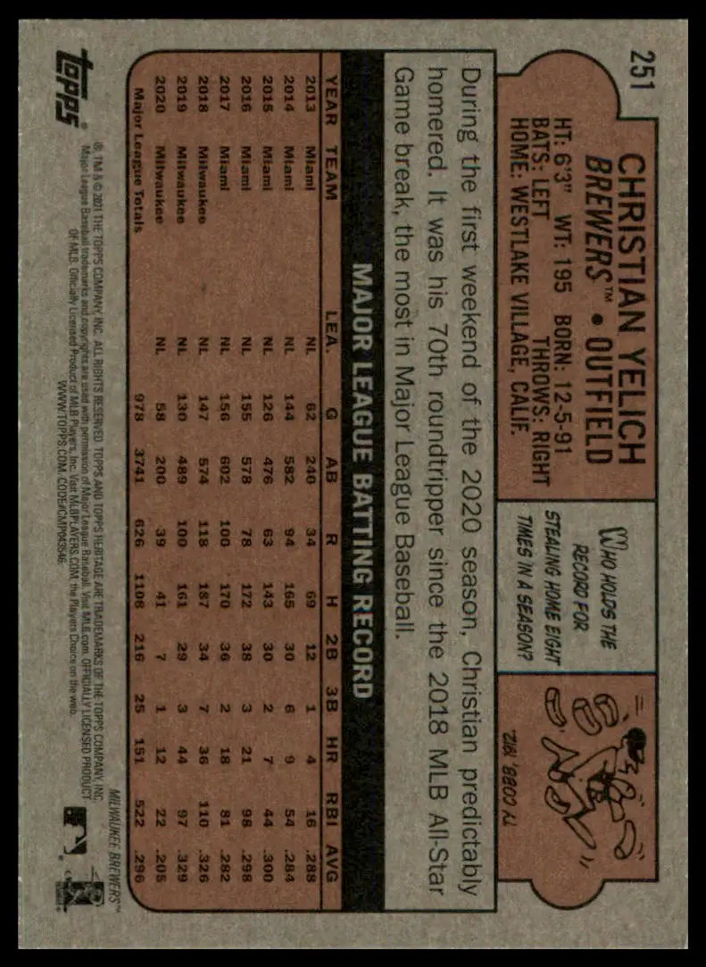Christian Yelich 2021 Topps Heritage #251 Milwaukee Brewers