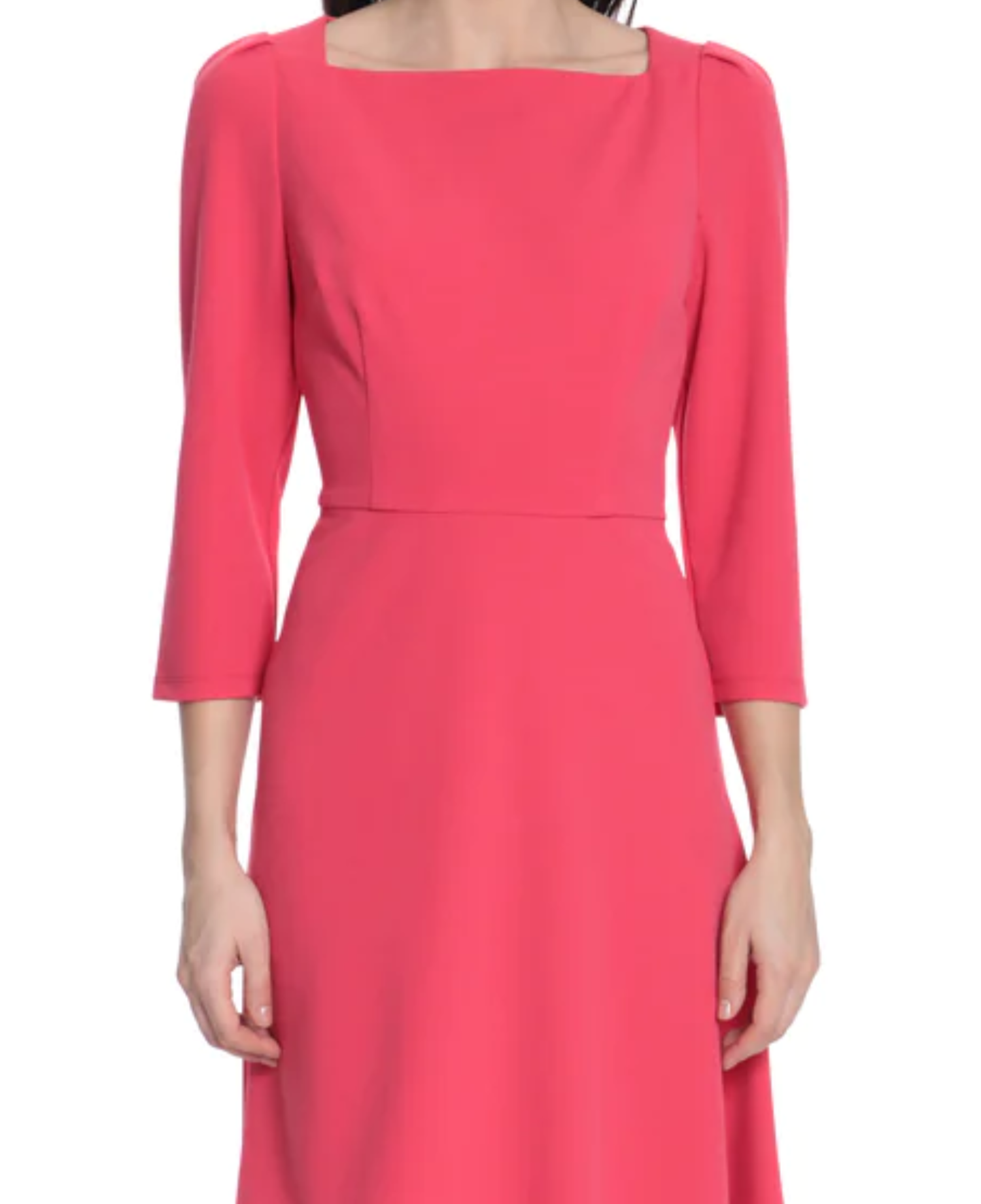Whether you're in the corporate world or attending a party, this is the ideal dress for both that features a square neckline, along with an angled knee-length skirt. The raspberry day dress is crafted with a combination of lightweight and wrinkle-resistant scuba crepe making it perfect for day-to-night transitions and all-day comfort.