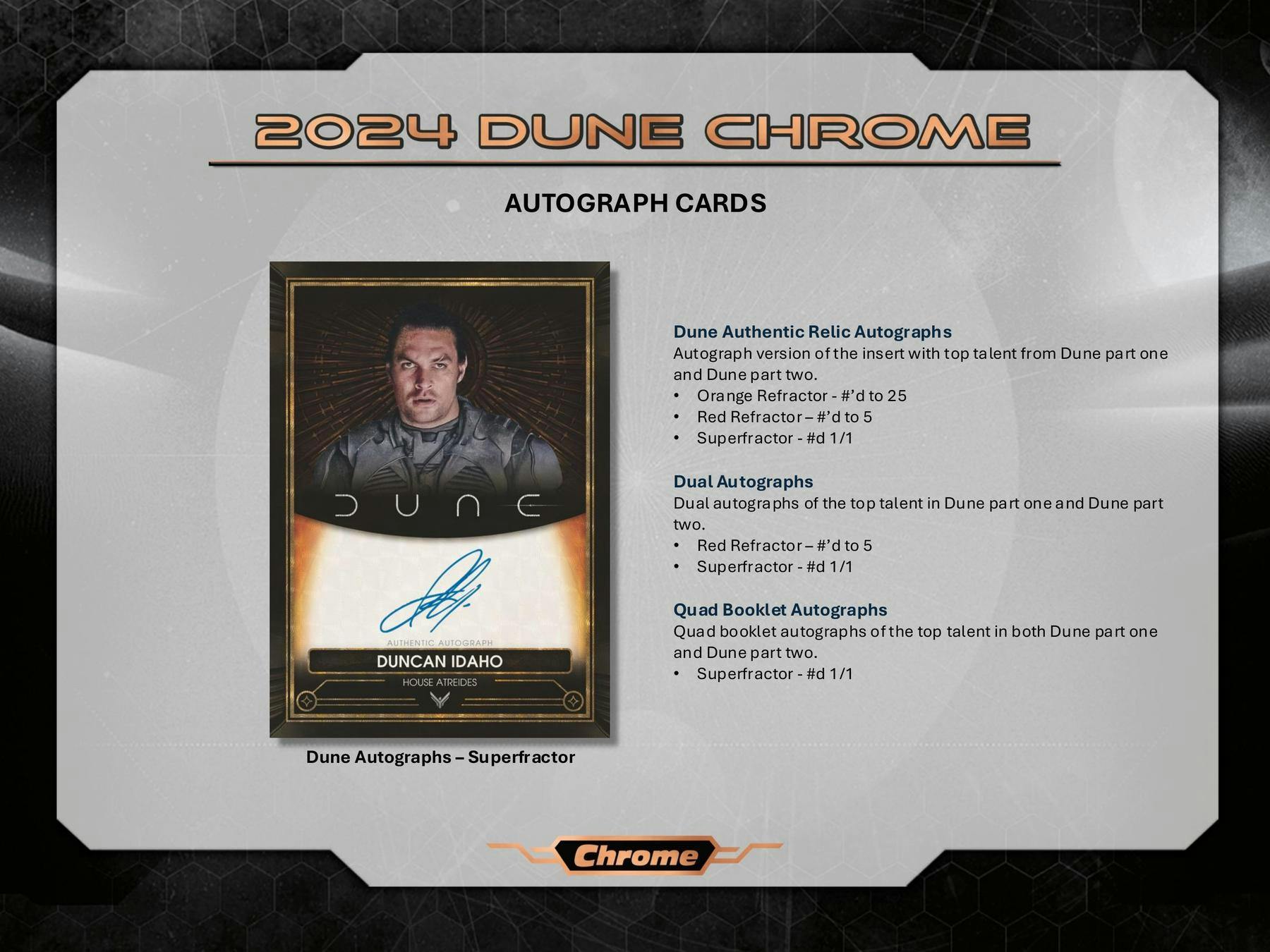 - Dune Acrylics & Spice Autographs – limited parallels as low as #'d to 5 and 1-of-1s