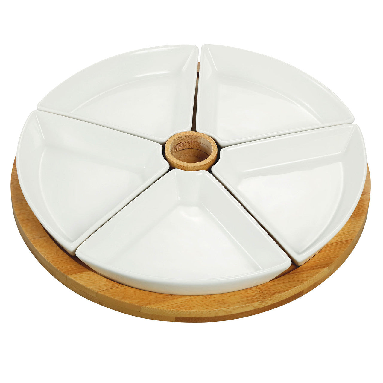 Elama Signature 7 Piece Appetizer Serving Set with 5 Serving Dishes, Center Tooth Pick Holder and B