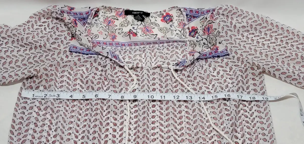 The Forever 21 Bohemian Long Sleeve Floral Dress in size Small is a stylish and comfortable option for casual or travel occasions. The dress features a V-neckline and ruffle accents, with a pullover closure for easy wear. Made from lightweight chiffon fabric with a floral pattern, this tunic-style dress has a bohemian theme and empire waist silhouette. The multicolor design and balloon sleeves add a touch of charm, making it a versatile choice for summer, fall, and spring seasons. Machine washable for easy care, this dress is perfect for those who love a relaxed and hippie-inspired look.