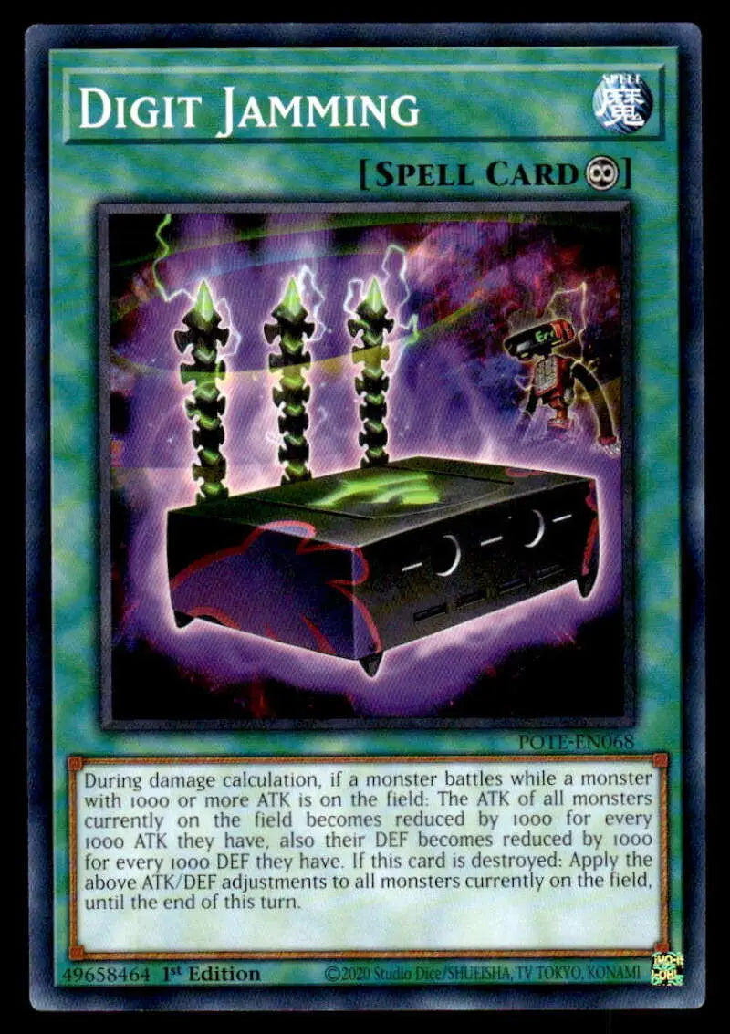 The Power of the Elements #POTE-EN068 Digit Jamming Yugioh Trading Card is a powerful and versatile card that can turn the tide of any duel. With its unique effect, this card can disrupt your opponent's strategies and leave them scrambling to recover.