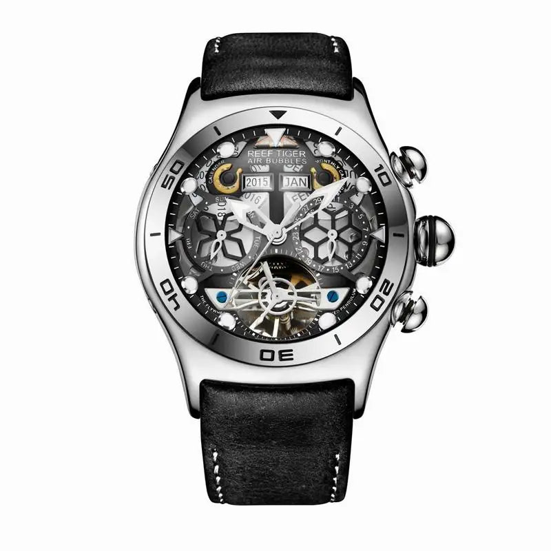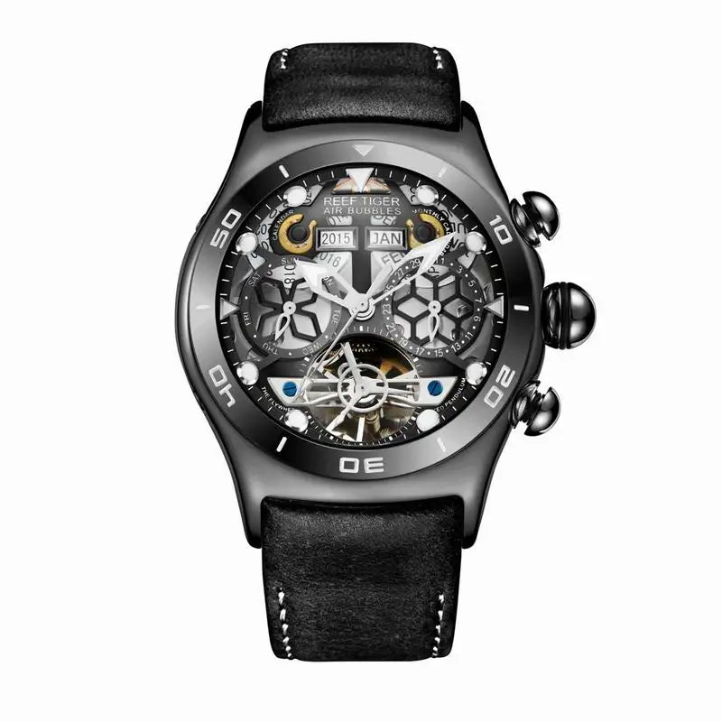 Reef Tiger/RT Sport Watch For Men Skeleton Luminous Watch Year Month Date Day Rose Gold Automatic Watches RGA703