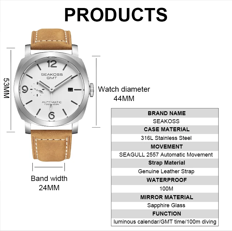 SEAKOSS GMT Diving Automatic Mechanical Watch For Men 1963 Seagull 2557 Automatic Movement Super Luminous Calendar Sapphire Wristwatches