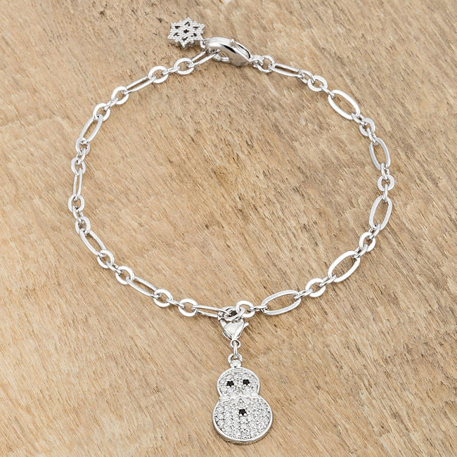 Snowman 0.2ct CZ Rhodium Holiday Charm Bracelet