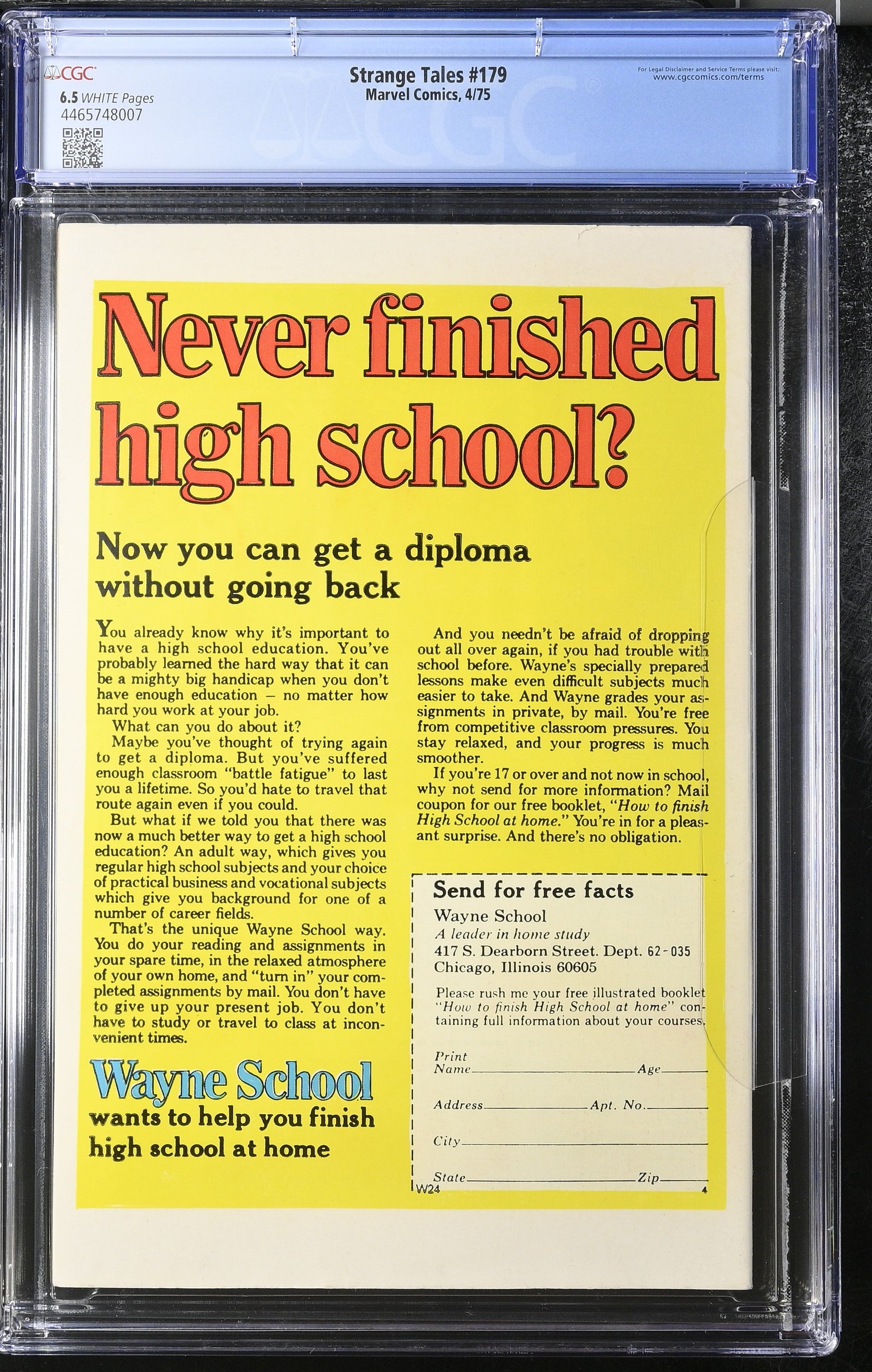 This is a certified CGC 6.5 copy of Strange Tales #179 from 1975, a key issue in the Bronze Age featuring Adam Warlock.