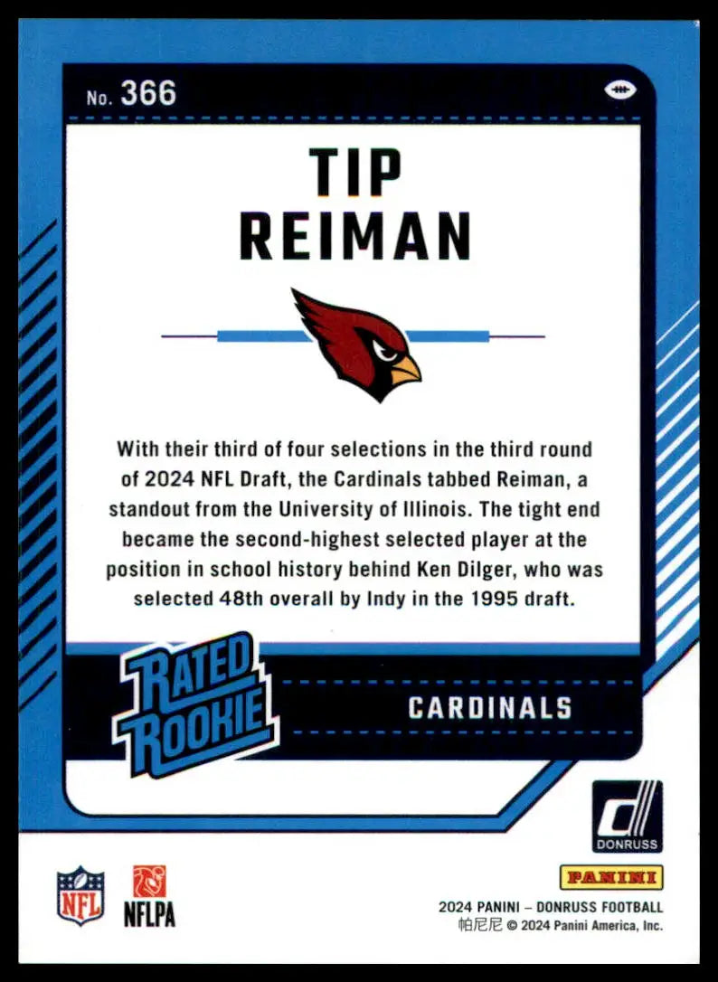 Tip Reiman Rookie 2024 Donruss #366 Arizona Cardinals
