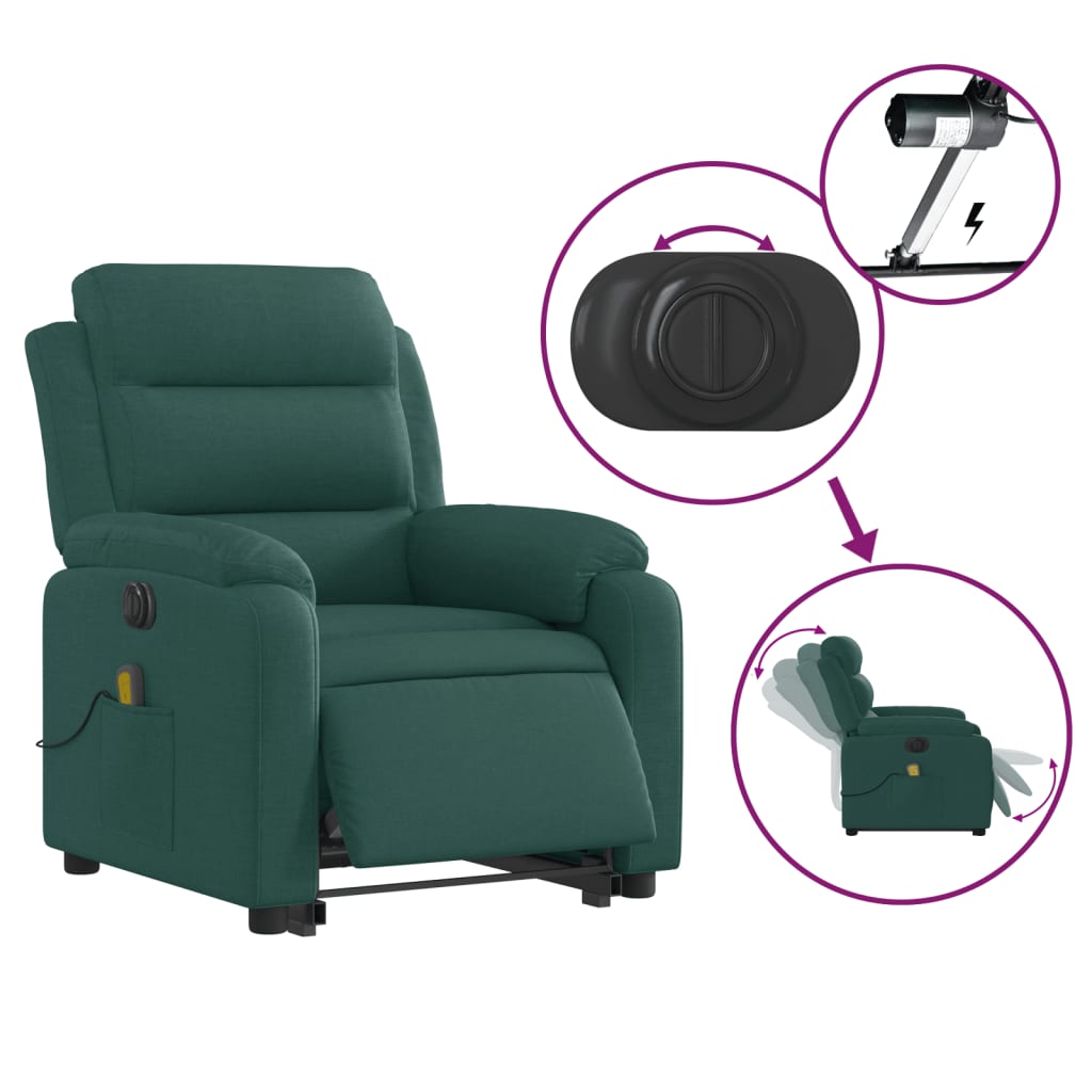 vidaXL Electric Stand up Massage Recliner Chair Dark Green Fabric